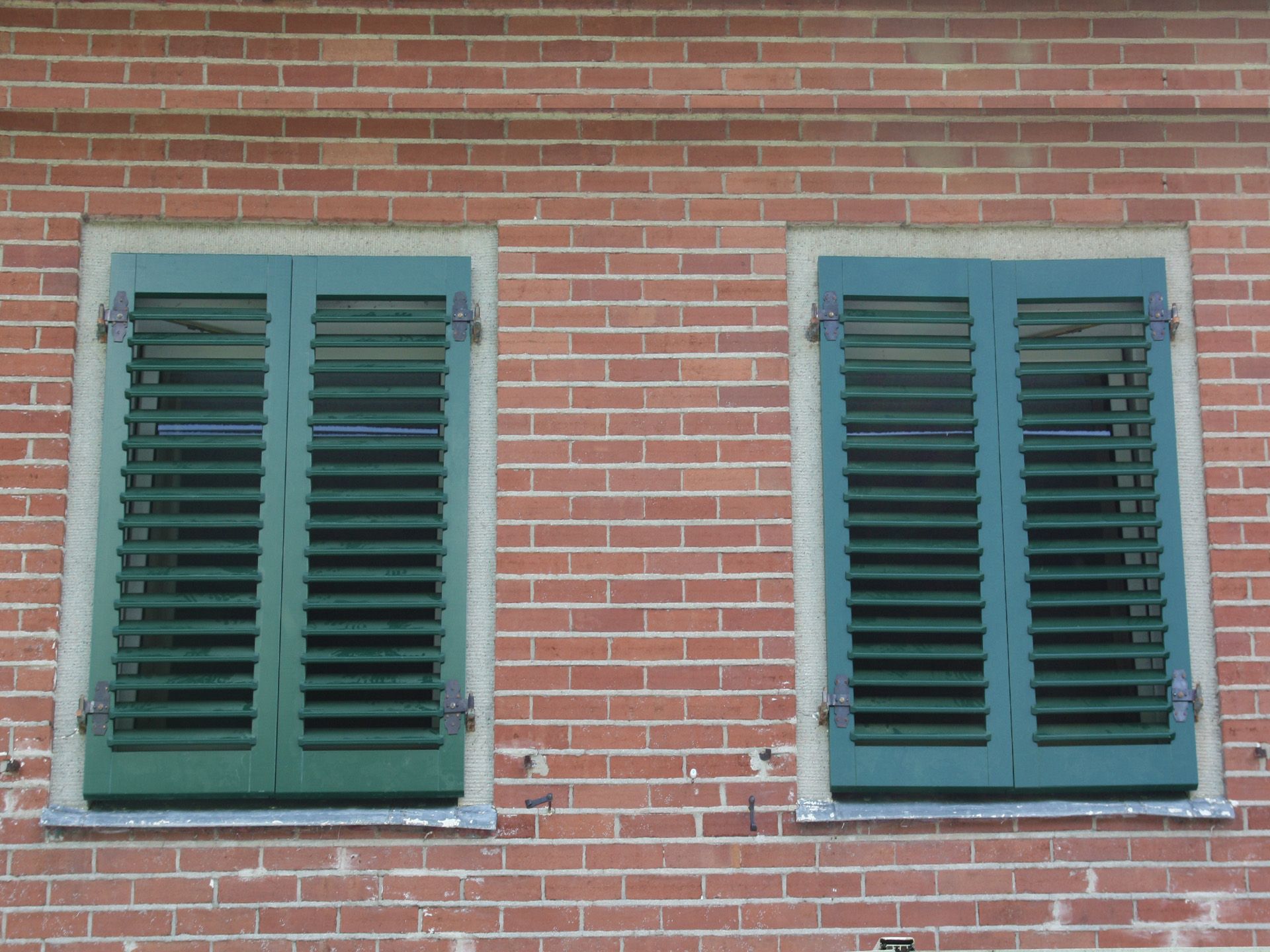 - Fensterläden in Lärche, moosgrün gestrichen (mit diffusionsoffenem Lack) für den Außenbereich.